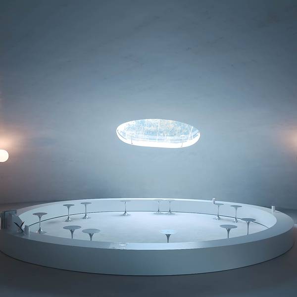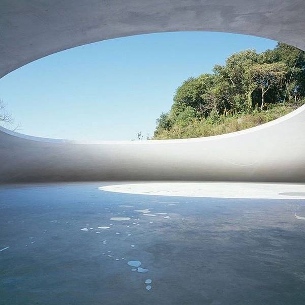 因为进去之后就不能拍照了,所以以下馆内的照片全部出自网站下载。内藤礼的设计仅有最单纯的自然艺术,空气、阳光、风以及地上一点一滴的水。以「母体」为创作概念,将地下的水引进有186个极细小洞的水泥地板,看不见的倾斜度与重力,会将水再挤出小洞口。地板部分区域涂上几乎看不见的拨水剂涂料,稍微控制水的流向,又不限制它们的活动。顶端的两个洞巧妙地将外部的自然环境引进到建筑体中,随着季节与气候的变化,让整个美术馆活起来。
