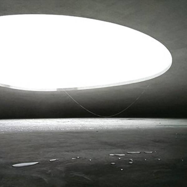 你可以选择安静的坐在地板上,看着水滴随意地流动、消失与汇集,或是慢步走在整个建筑中,感受风、光与各种自然界的生命之音,当然也可以呼吸冥想放空发呆,忍不住打个喷嚏,声音就传遍整个宇宙。偶尔有些落叶掉下,小虫子误闯进来,如果下雨那更精彩。说实话到现在我还是无法忘记第一脚踏进馆內,从疑惑、激动到感动的一系列情绪变化。假如你细心观察脚下周遭,会发现有许多的水滴从水泥细缝中肆意地冒出来,然后如同有生命般地在整个空间中往一個方向汇流而去,时而缓慢,时而迅猛地流动。它们会从小小的洞口跑出来,出其而不意,流动与汇集在一瞬间,再从另一个洞口消失而去,整个美术馆俨然成为了一个敘述生命过程的象征。没错,这个美术馆里只展出一件作品,而且永远不会更改。