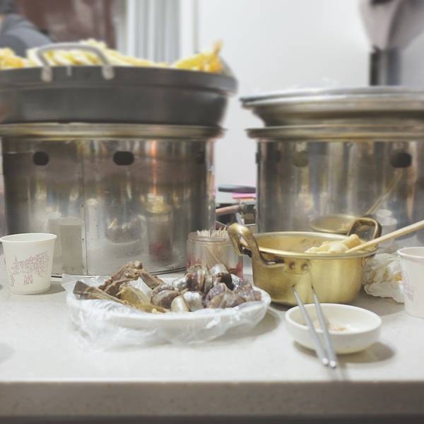 — 新堂 | 帐篷夜宵摊位暖一暖 ↓↓↓新堂站 回到公寓附近,联系公寓我,介绍说附近有一个市场可以吃夜宵。冷风中兜了一大圈发现走错路啦,之后重新回到公寓,才发现市场就是在隔壁一条巷子里。看到几个还在经营着生意的是小吃摊位那种宵夜档,决定再吃鱼饼还有米肠。这次还点了几份炸物。 这个档口有胶纸似的围着的帐篷,坐在里面很暖和,再喝一口汤,心里也是暖暖的。小小档口,还备有桌子,电视机,而且很干净,坐着舒适。 时间大概是10点了,档口外面有两个小桌子,坐着两个本地中年男子吧,其中一个会说一点中文,还和我们聊天。PS:也许是因为我们说粤语,好几次对方都是直接问“Are you from Hongkong?”。还有不知道为啥还有一些化妆品店店员以为我是日本人直接说日语。