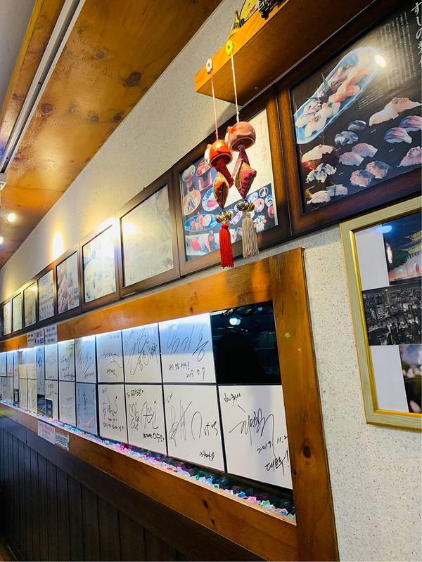 - 在世界各地,只要有日本料理的地方 就一定会有寿司出现 而回转寿司 因品种多样、轻松随意 深受吃客们的欢迎 也是小宁的最爱! - 各种各样的寿司回转 看到自己喜欢的就拿下来吃 吃的炒鸡过瘾 小宁常去的这家寿司店 在韩国几乎每天都门庭若市 可见生意之好 一整面的签名墙 足见其在韩国的受欢迎程度! - 进店就坐之后 大家就可以开启“看到什么吃什么”的模式了 回转寿司输送带上的小碟都可以随意自取 如果有想吃的回转寿司小碟 传送带上找不到的话也是可以向服务员点单 俩人的话,一般取6~8个小碟就够了 (这里除了像小宁一样的寿司🍣爱好者hh) 碟子的颜色不同,价格也不一样 最后是根据碟子的颜色和数量算钱的 - 从平价的卷寿司到金枪鱼,鲸鱼肉应有尽有 食材从色泽和肉质上都看的出的新鲜 分量也是足足的!! 金枪鱼、三文鱼、虾都超大块头 特别是~他家的三文鱼生鱼片巨好吃! 连吃三盘无压力 我和小伙伴吃完一轮不过瘾 又追加了许多 看我俩台上摞的盘子快如山了 这顿还没吃完又约好的下次 哈哈哈哈,两个标准的吃货hh 喜爱新鲜好吃寿司的小伙伴一定来尝尝丫! - 🌟店名:우미회전초밥 🕰营业时间:11:30-21:30(周日休息) 📍地址: 서울 중구 퇴계로 397(中区退溪路397) 🚇交通: 2号/6号线 新堂站 9号出口出来就是!