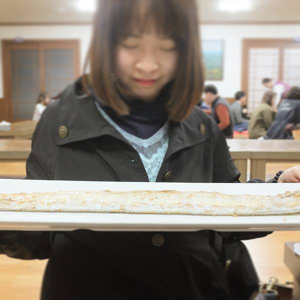 — 保健路 | 原来带鱼饭店在这里 ↓↓↓제주마당(莲洞店,靠近E-MART) 终于到来到距离E-MART才1分钟路程的让我们寻找到发狂的带鱼饭店。到济州岛一定要吃海鲜定食/烤带鱼。在牛岛吃不到那个很出名的生鱼片定食啦,那今晚就一定要试一下谷琪推荐的带鱼店。网上也有这个店,定位是另一个제주마당的,在汉拿山国立公园那边的,也是很多当地人到那边吃。第一次吃那么长的银白带鱼,烤的只撒上点盐花,比较原汁原味,但是又一点也不腥。 点了一个套餐,烤带鱼,配一份五小片的带鱼生鱼片,紫米饭,海带汤,海鲜汤,其他小菜(包括一份酱蟹),75000韩币,大概RMB450。结账的时候发现墙壁有很多明星签名,还有裴勇俊!!!