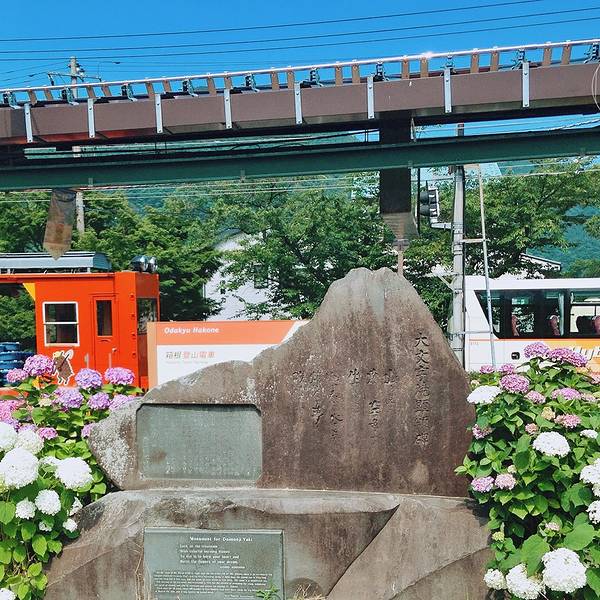 这是日本国内唯一一辆登山电车。从海拔96米的箱根汤本站出发,约需40分钟抵达海拔541米的终点强罗站。有时中途会以“之”字形路线逆向行驶,由于车辆的行驶方向变为逆向,驾驶员与乘务员会调换。您可以享受到乘坐...这是日本国内唯一一辆登山电车。从海拔96米的箱根汤本站出发,约需40分钟抵达海拔541米的终点强罗站。有时中途会以“之”字形路线逆向行驶,由于车辆的行驶方向变为逆向,驾驶员与乘务员会调换。您可以享受到乘坐登山电车所特有的旅行乐趣。登山铁道沿线的绣球花于6月中旬会迎来花期。所以登山电车有着“绣球花电车”的昵称,箱根登山电车正如其名,是攀登箱根山的电车,随着各处的海拔攀升,绣球花的观赏时期会逐渐延迟,直至7月下旬。您可以从缓慢行驶的登山电车中欣赏几乎触及车窗的沿线盛开的绣球花。