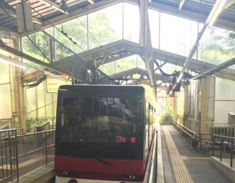 - 然后转登山缆车继续上行,坡道很陡,很刺激。从汤本站坐登山火车人字形盘升到半山腰的强罗车站