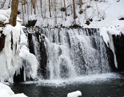 吊水壶森林公园(双阳冰溶洞风景旅游区)位于长春市区东南约85公里处,这里群山连绵、森林茂密,更有着神秘的地下岩溶和冰洞景观。夏季是来冰溶洞旅游区的好时机,不仅植被苍翠茂盛,而且是避暑的好地方,尤其适合入洞探秘。风景区内有老吊洞、冰洞、夕阳塔、野狼谷、千米栈道、通天洞、罗汉洞、弥勒宫、老道洞、老虎洞等景点。夕阳塔坐落于入山口的山峰之上,远远地望去,神秘莫测。过了夕阳塔是一条原始大峡谷,这就是野狼谷,春季时这里可观赏盛开的金达莱。深82米的冰洞是景区内的一大主景点,里面分上下两层,洞里的冰瀑布、洞中彩色的冰、洞壁上奇特的方解石、洞内的活生物——红蝙蝠是冰洞的五大看点。