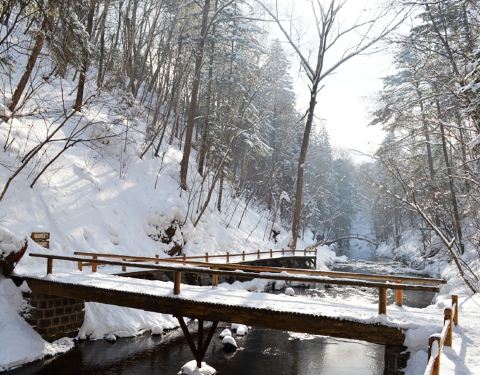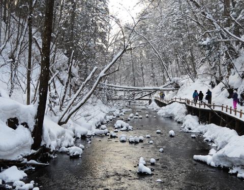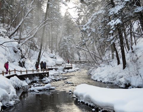 吊水壶景区沿线全长2380米,分上下游两段布局规划,全程建有栈道和12座结构各异的木桥木板小桥、流淌的小溪、岸边松软的白雪,触到你心灵里最柔软的地方……吊水壶瀑布是火山爆发后,河床受张力断迭形成的瀑布,宽约10米,落差7米。更别致的是另有一处水流好似喷泉,自崖中间凌空喷下,象茶壶中的水...木板小桥、流淌的小溪、岸边松软的白雪,触到你心灵里最柔软的地方……吊水壶瀑布是火山爆发后,河床受张力断迭形成的瀑布,宽约10米,落差7米。更别致的是另有一处水流好似喷泉,自崖中间凌空喷下,象茶壶中的水从壶嘴中倒出来一样,故当地人称其为 “ 吊水壶 ” 。 吊水壶瀑布景致壮观秀丽,流水清澈见底,冬天水不封冰,夏日冰凉刺骨。炎热的盛夏时节前去,一定会看到水珠飞溅、雾气蒙蒙的景象,一阵阵凉气袭来,沁人心脾,可谓避暑度夏的最好去处了。 我的感受是冬季来这里,瀑布配上雪景别有一番韵味。吊水壶景区沿线全长2380米,分上下游两段布局规划,全程建有栈道和12座结构各异的木桥。 展开