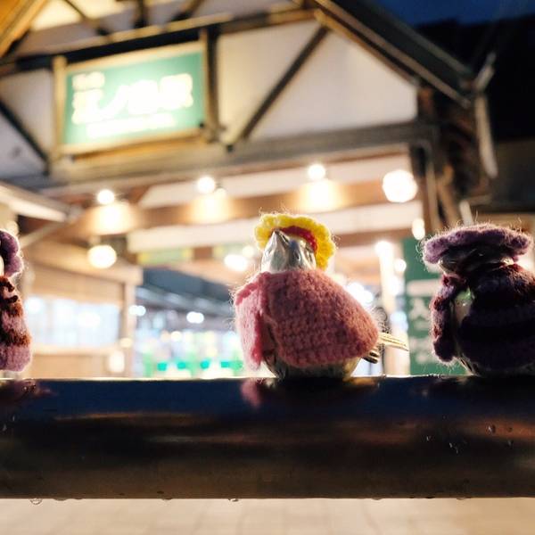 江之岛站出来,看见了著名的小鸟。江之岛江之岛天冷了它们都换上了毛衣。 旅程到了现在体力有点跟不上,没有再去逛岛上的景点。 从片濑江之岛站直接坐小田急返程啦。江之岛这个车站颇有 中国 风嘛。