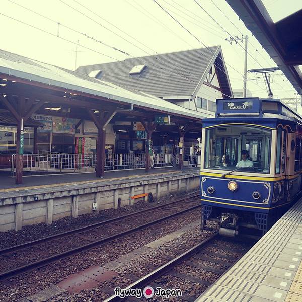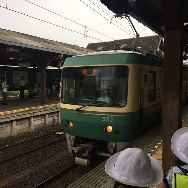 吃完饭,天公不作美就开始下雨了,我们朝着江之电的江之岛站出发,准备去下一站, 镰仓 高校前。江之岛在江之岛站等车的时候有许多放了学的小朋友,穿着制服带着帽子,很可爱。