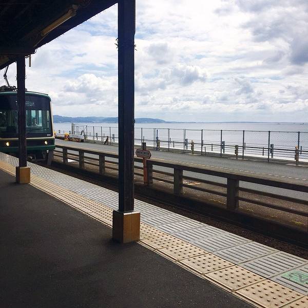 江之岛站到啦!跟脑海中一样的站台,还有那通向镰仓的电车……#我的青春何处安放#