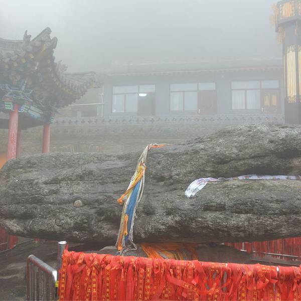 上山时大雾,可能与昨天刚下过雨有关系。上山几乎看不清路,只能紧盯导航,差点就错过了路口。清凉寺,还是在鹿鼎记中知道的,书中传说顺治出家在此。五台山清凉寺,位于中台南瓦厂村东北的清凉谷,距台怀镇约15千米,寺内因有著名的文殊圣迹“清凉石”而得名。清凉石是清凉寺的象征,文殊菩萨曾于清凉石上讲经说法,因此也称“曼殊床。清凉石 展开