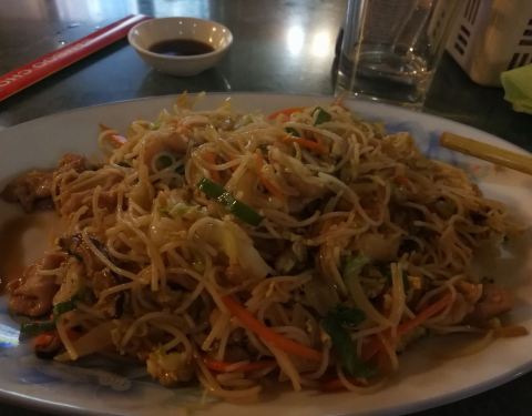 此次欧洲之行第一顿中餐,短发的姑娘很友好,长发的大姐对人爱理不理。店里吃饭的竟然外国人比华人多,意外。炒米粉很好吃,尖椒炒牛肉实在太辣了,虽然老板友情提示过我这道菜辣,但是我显然轻敌了,自己点的辣,辣死也要努力吃完