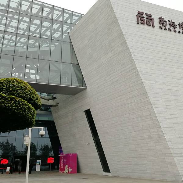 南海博物馆,位于佛山南海区西樵山南门入口处,除了西樵山、南海博物馆之外,博物馆对面是国艺影视城,马路对面是一家酒店,其实很适合安排一次两天一夜的休闲游,爬爬山,逛逛影视城和博物馆,就住在西樵山山脚下,挺惬意的,西樵山空气很不错。南海博物馆开放时间是每周二至周日9:00—17:00,周一闭馆,不过值得注意的是下午4点钟就停止入场了,所以要参观的话要看好时间,免费不免票,在门口领票参观。公交车可以坐樵01或樵16路到西樵山南枢纽站(南海博物馆)下,走几十米就到了。开车比较方便,对于外地游客而言,乘坐公交车会费时比较长。南海博物馆在西樵山的山脚下,建筑很有特色,看上去蛮有大师的感觉的。博物馆其实是由两部分组成,一部分是博物馆,另一部分是石景宜博士博物馆。首层是大堂,还有一个临时展厅,主要的展览在二楼,坐电梯上去会有指示,参观起来还是比较顺畅的,按照指示下楼后会来到石景宜博物馆的门口,这个博物馆主要是介绍石景宜的事迹和他收藏的藏品,有贝叶经、书画作品、工艺品等等。博物馆方面的展览主要有南海记忆,这是介绍南海历史的,还有一个书画展览、名人展和非物质文化遗产的展览。在这里逗留个一两个小时也是一个不错的选择,可以了解到南海的历史。每天上午10:00、11:00和下午14:30提供免费讲解服务,可以跟着讲解员听一听,会更有收获。