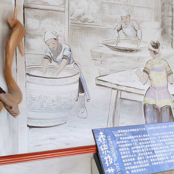 现在院内作为贵州民间艺术的展览向游人开放。门口的戏楼。这是贵州市级非遗名录的地戏,最有影响力的是大寨地戏,演出队伍大多是由布依族民间艺人组成。展示黄家玫瑰糖的制作技艺,说实话这里的玫瑰糖真是很好吃,尤其是配上糕粑稀饭那真是美味!可能制作技艺不一样,感觉和我们云南的玫瑰糖有一点区别,但都是非常好吃的玫瑰糖啦,O(∩_∩)O哈哈~敦煌佛女,这件艺术品竟然是蜡染的作品! 展开