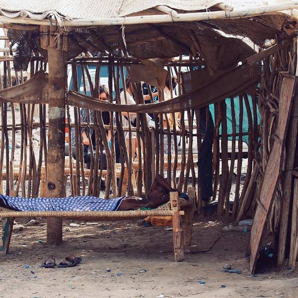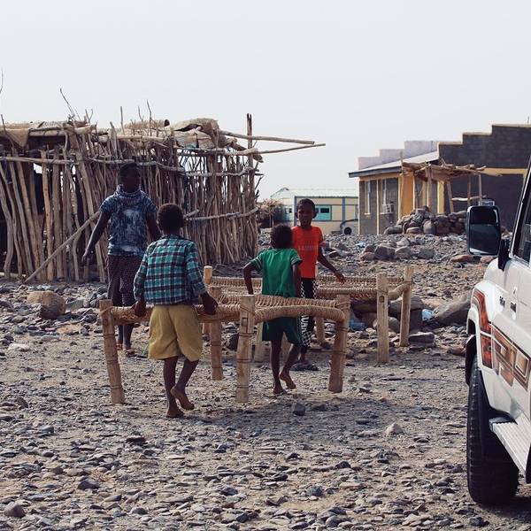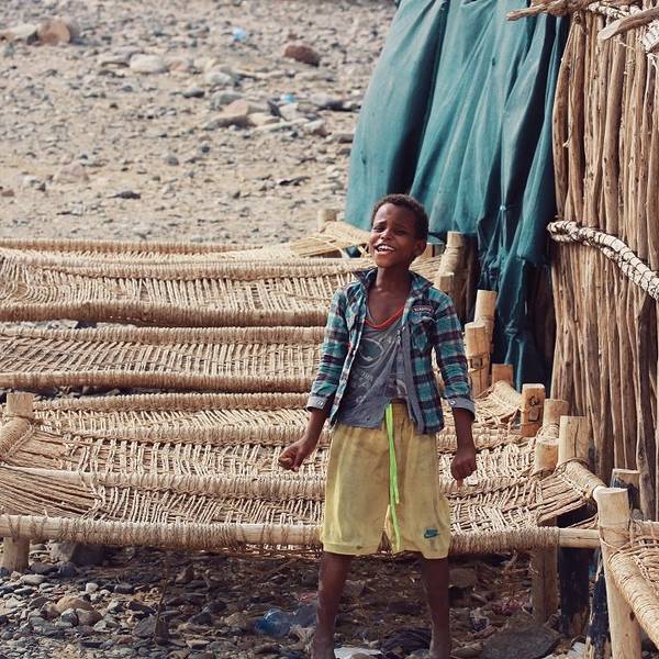 带上必备品,车上装满水和食物,距离目的地还有100+公里,现在已经是41℃了[捂脸] 去往Denakil沙漠是埃塞之行最艰苦,条件最恶劣的四天,人迹罕至,黄沙漫天,风餐露宿,没水没电,高温酷热,不能洗澡,还要攀登Erta Ale火山,对精神和身体都是严酷的考验。到达今晚住的营地,没错,就是露天的,司机会帮我们铺上床垫,如果不怕热,可以问司机拿睡袋。