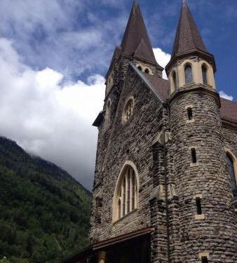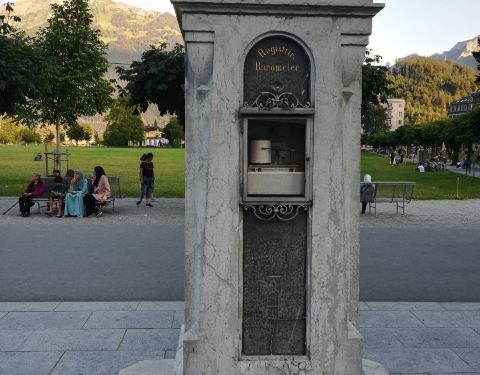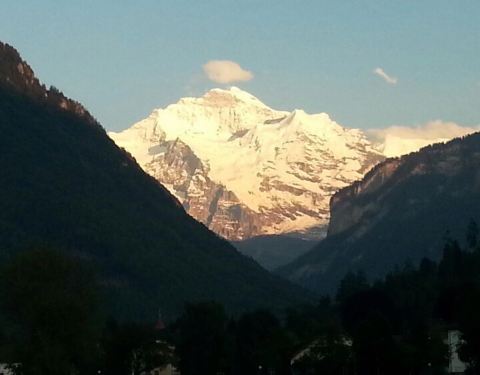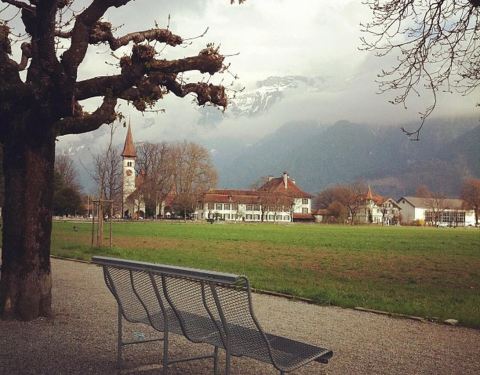 因为天气原因没去成少女峰,所以只能在因特拉肯镇上看看少女峰了。这里是一大片绿地。去的时候正好有人造冰的溜冰场。很多当地人在溜冰