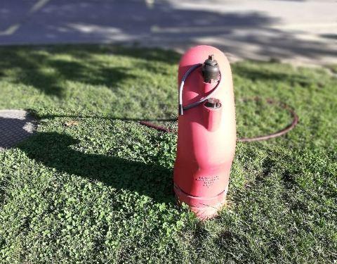沿着唯一的一条主干道往西走,在左边就是这块大大的绿草坪了,草坪也是滑翔伞的着落点,不时地会有滑...