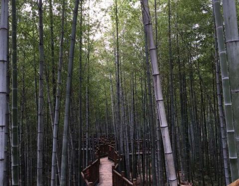 穿鞋套上走在竹林上不短,远望风景也好,人多了点。体验下还是蛮有意思的