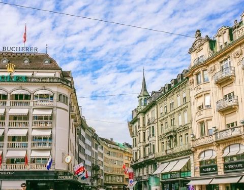 这是当地最大的一个广场了,也是一个交通枢纽,有很多的电车都通过广场的中心,周围有很多卖瑞士手表的店铺