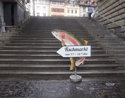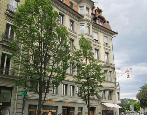 广场位于卡佩尔廊桥的北侧,这是当地最大的一个广场了,也是一个交通枢纽,有很多的电车都通过广场的中心,周围有很多卖瑞士手表的店铺。
