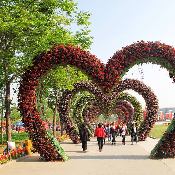 “花”早已成为鄢陵的符号,在花都鄢陵以花之名与花相约。 花博园宛如张开翅膀的彩凤展现在人们面前迎接人们到来,这里是每年花博会的主场地,集鄢陵花卉大成者,非花博园莫属。用鲜花精心编织搭建成的心形造型花径长廊引人入胜,漫步其中就像进入童话般的世界。这里已经成为春游、聚会的场所,进入园内你才真正体会到什么叫花如海、人如潮。