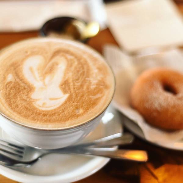 走累了就找了家叫umie的咖啡馆,装修很有特色,菜单也挺有趣的,我点的是豆腐甜甜圈和咖啡