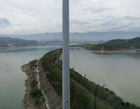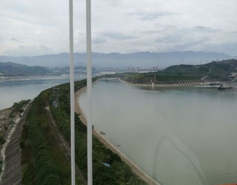 只有站在夷陵长江大桥上,才能看到小船坐电梯,大船爬楼梯的奇特景观,还可以看到三峡大坝的泄洪口,可惜今天没有泄洪,看不到壮观的风景了