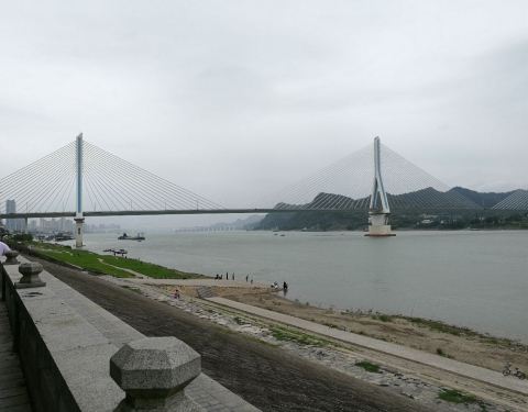 宜昌市城区的第一座垮江大桥,建于上世纪末,开始是收费的,前几年改成免费了,使宜昌市城区和江南交通便利起来,桥头都有公园,维护的很好