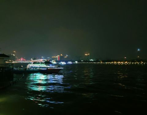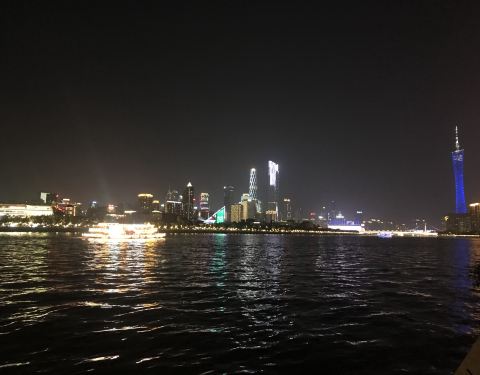 珠江上游轮往来,晚上灯光璀璨,有恍然如梦、世界大同的感觉