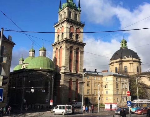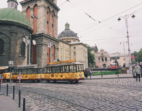 利沃夫所有教堂的门都没什么标识,最靠谱的是跟着别人进,反正都没有门票。这里广场上有一个老电车改的纪念品/咖啡店,里面的东西还不错。