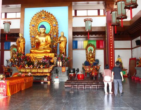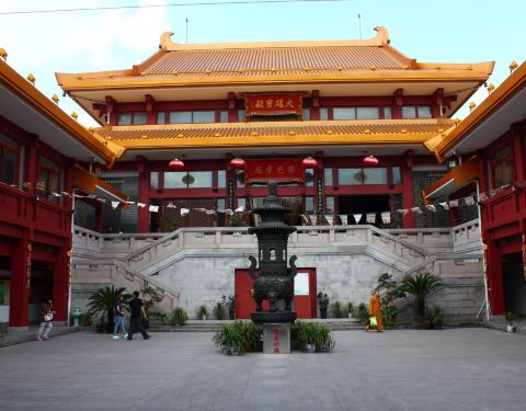 七宝教寺是七宝古镇的主体建筑,也是上海有名的寺庙之一。位于古镇的尽头,如今是十几年前翻修的七宝教寺是七宝古镇的主体建筑,也是上海有名的寺庙之一。位于古镇的尽头,如今是十几年前翻修的。占地面积蛮大的,里面主打汉唐风格,以黄色为主基调,整体给人的感觉很鲜明、敞亮、宁静、祥和,一片净土。七宝...七宝教寺是七宝古镇的主体建筑,也是上海有名的寺庙之一。位于古镇的尽头,如今是十几年前翻修的。占地面积蛮大的,里面主打汉唐风格,以黄色为主基调,整体给人的感觉很鲜明、敞亮、宁静、祥和,一片净土。七宝教寺免费开放,里面主体建筑是大雄宝殿。有趣的是,钟楼和鼓楼一般各在寺庙的左右前方,并不会在一起,而这座寺庙的鼓楼和钟楼却是和山门连成整体,里面面积蛮大的,和厦门的南普陀寺、无锡的惠山寺格局类似。有不少法师在里面做功课,也有不少居士、信徒来这里修行、膜拜。 展开