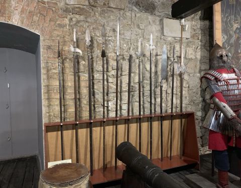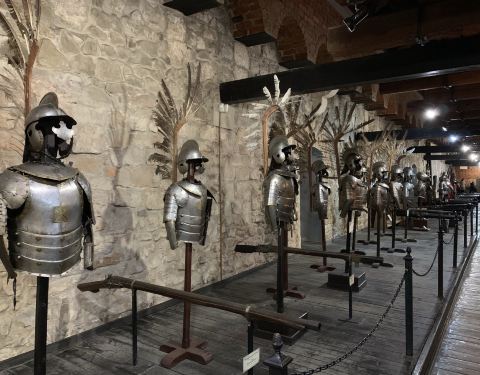 其他人都不知道在介绍啥,你们介绍的是兵器库的三产,吃肉的店,的确天天排队。楼上两层的兵器库,成人50,小孩学生30,家庭票110。不大,一会儿就看完了。城市兵工厂(乌克兰语:Львівський міський арсенал, Miskiy arsenal, 波兰语:Arsenał Miejski we Lwowie)是利沃夫的三座兵工厂中历史最古老的一座。另外两座是皇家兵工厂和Sieniawski兵工厂。城市兵工厂是一座两层高的建筑,在北侧有塔楼。现在的建筑外观修建于1554年至1556年[1]。现在利沃夫兵工厂是一座兵器博物馆。