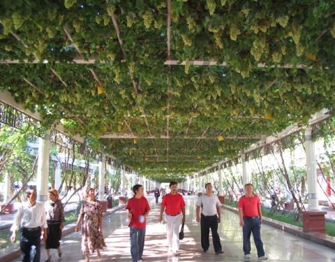 我好奇地上前观看,不断拍摄下如此动人的劳动场面。村民们笑意盈盈地看着我,并对我说“HELLO!”,我还以“你们好!”,他们竟笑着说以为我是韩国人呢。“气愤”啊!为什么首先想到外国人呢?可见平时背包来旅游的大多是外国人。我当然骄傲地对他们大声强调:“我是中国人呀!我是广州来的!”他们随即发出清脆的笑声。我趁此活跃、舒畅的气氛上前蹲下与他们聊天。“这葡萄甜吗?”“你尝尝嘛!”我摘下一颗放到嘴里细嚼,果然是蜜甜爽口。
