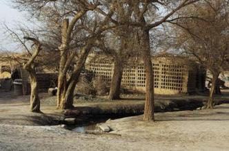 这是鄯善县最南边的一个村庄,绿洲到此戛然而止,好像这里已是大地的尽头。据说由迪坎尔村到罗布泊有两条路可以选择:一条向南过营盘古城(西域历史上的墨山国)到罗布泊,是进入罗布泊最近的一条道;还有一条路是向南穿越库鲁克塔格山,直接进入罗布泊荒漠,这条路路途长,危险性也大,是一条通往楼兰的探险寻觅之路。