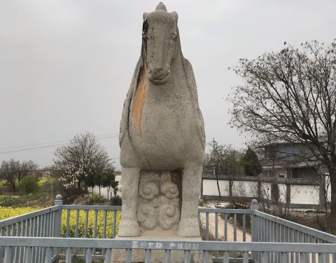 唐崇陵位于泾阳县安吴镇东硷村东北,嵯峨山东段南麓,墓主为唐德宗李适。国家重点文物保护单位。 唐崇陵石刻很多,特别是石马有些神秘,即每天早晨,眼睛里流出红颜色的水,当地人叫流血,并附以种种神奇的传说,认为此马有灵性,千年不死。