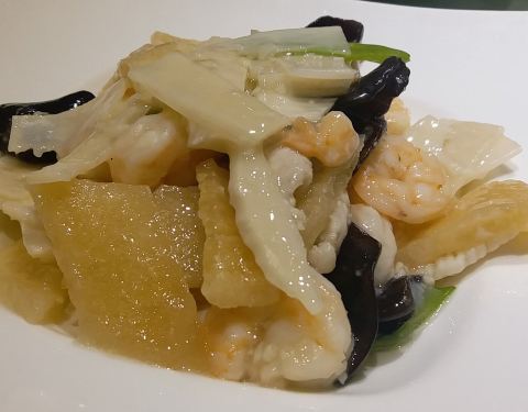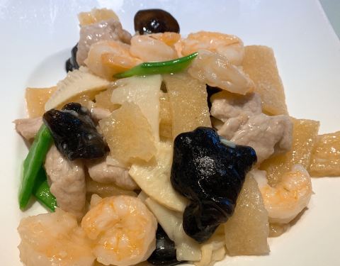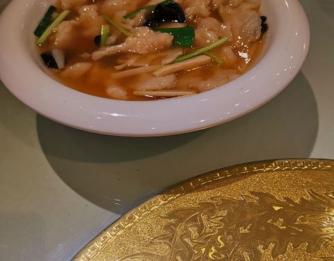 上菜快到让人震惊,五分钟就上了三个热菜,菜的味道不如梅飞酒家,但是价格却更贵。 爆炒腰花分量有点少,再就是太酸了。 爆三样里的猪皮味道很奇怪,虾仁超级咸。 熘鱼片没有吃出什么特别,可能龙利鱼太平庸了。 中午饭点也没坐满。
