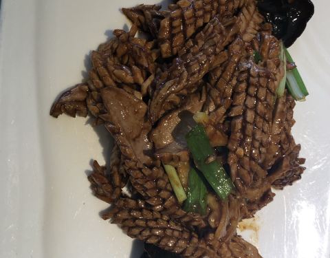 中午饭点也没坐满。 爆三样里的猪皮味道很奇怪,虾仁超级咸。 爆炒腰花分量有点少,再就是太酸了
