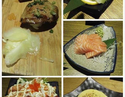 厚切三文鱼hin好吃,口感一级棒。芒果鹅肝寿司 鹅肝刚入口有点腻 瞬间被芒果的形象化解了 盘子边边上放的是姜吗?我不爱吃姜的人觉得特别好吃鳗鱼寿司 嘤嘤嘤 本来想吃鳗鱼饭的 结果没了 鳗鱼最爱~!梅子酒做的最...厚切三文鱼hin好吃,口感一级棒。芒果鹅肝寿司 鹅肝刚入口有点腻 瞬间被芒果的形象化解了 盘子边边上放的是姜吗?我不爱吃姜的人觉得特别好吃鳗鱼寿司 嘤嘤嘤 本来想吃鳗鱼饭的 结果没了 鳗鱼最爱~!梅子酒做的最棒了!!!