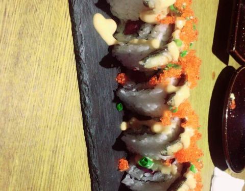 厚切三文鱼hin好吃,口感一级棒。芒果鹅肝寿司 鹅肝刚入口有点腻 瞬间被芒果的形象化解了 盘子边边上放的是姜吗?我不爱吃姜的人觉得特别好吃鳗鱼寿司 嘤嘤嘤 本来想吃鳗鱼饭的 结果没了 鳗鱼最爱~!梅子酒做的最棒了!!!