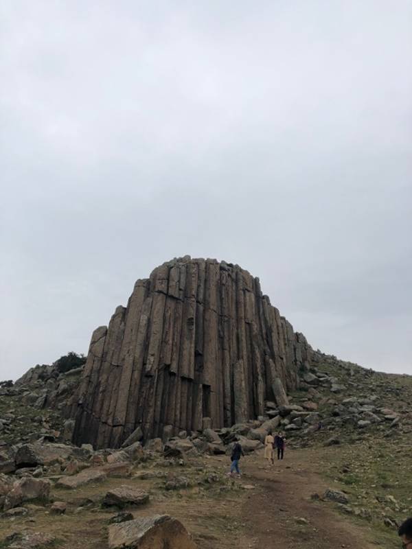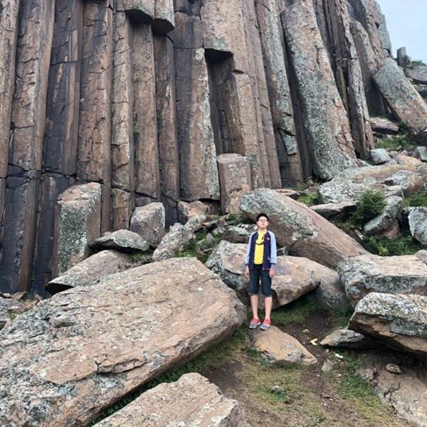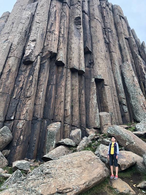 太仆寺旗政府所在地宝昌县以西20公里处,有一座火山喷发后形成的地质景观——石条山。站在山脚下仰望,垂直的石条层层矗立,几乎成为直线,险峻而挺拔。在突兀的山崖上,有个鸟洞,几株苍翠的松树把它隐藏了起来。山间经常有鸟儿在和煦的阳光下自由自在地飞翔——和平、安静、令人神往!爬上山顶,站在山体最前端向下俯视,在巨大的岩石群中,唯一的一道崖缝清晰可见,它只有一指多宽,而且要在一定的角度才能看到。这在地质景观中是不多见的。山坡上,大块的石头被平平地丢在了那里,而山顶上却是形状各异,让我们不禁慨叹大自然的鬼斧神工。