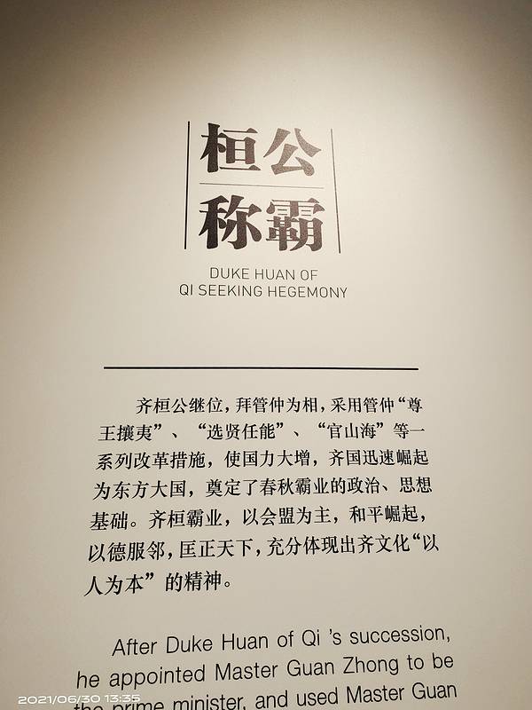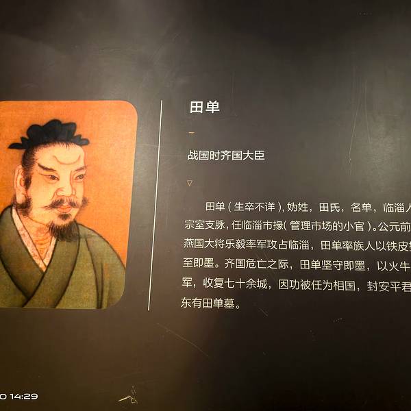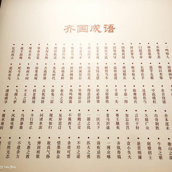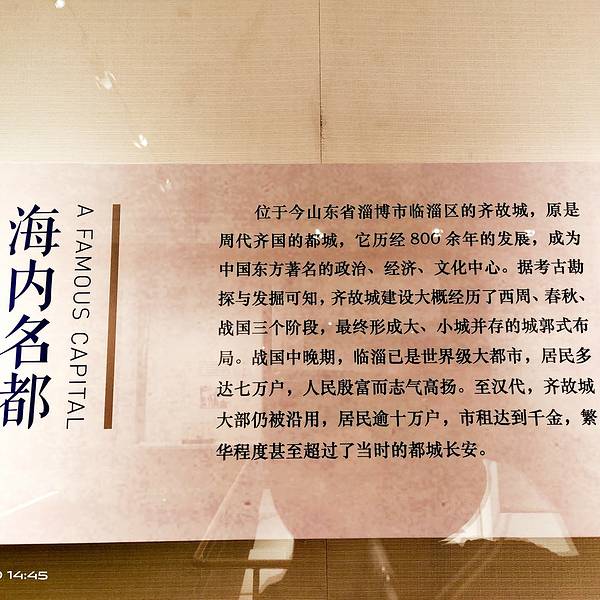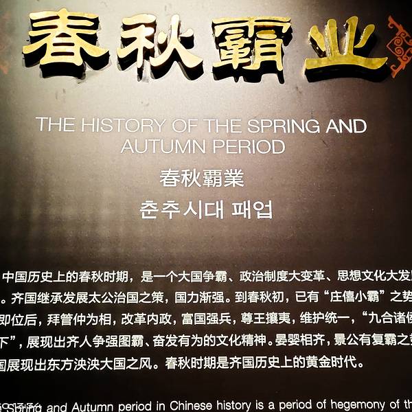 汉兵马俑普遍比较小不像秦始皇兵马俑那么震撼,但麻雀虽小五脏俱全。博物馆外围的环境也不错齐文化博物馆距离市内有些距离,但交通还算方便。到达齐文化博物馆看见远处有一个高大的塑像,应该是姜太公的雕像。在齐文化博物馆旁边也有很多馆。都是个人的有一些还收费,国家管理的只有齐文化博物馆和足球博...齐文化博物馆距离市内有些距离,但交通还算方便。到达齐文化博物馆看见远处有一个高大的塑像,应该是姜太公的雕像。在齐文化博物馆旁边也有很多馆。都是个人的有一些还收费,国家管理的只有齐文化博物馆和足球博物馆两个馆博物馆外围的环境也不错齐文化博物馆的大厅一样也是从史前说起临淄齐国故城,是周代至汉代的临淄城所在地,位于山东省淄博市临淄区中部的齐都镇,地处临淄区的西面和北面,北至古城村北,南至西关村南,西依系水,东临淄河,故名临淄临淄齐国故城包括大城和小城2部分,大城东临淄河,小城位于大城西南部。临淄齐国故城保存完整,地上地下文物古迹十分丰富,在中国文化史上占据着重要地位。汉兵马俑普遍比较小不像秦始皇兵马俑那么震撼,但麻雀虽小五脏俱全。放到一起还是挺壮观的汉朝的画像石也是一绝齐得名于济水东夷是指距今8300年前的后李文化起,历经北辛文化、大汶口文化、山东龙山文化、岳石文化的承载者。称呼上是对黄河流域下游包羲太昊伏羲氏后裔风夷畎夷阳夷和少昊后裔鸟夷白夷等夷人方国的总称或是对东方各民族的泛称。早期东夷是华夏族的族源之一。东夷的首领基本都在中国的史前神话中的记载太昊(公元前4354—公元前4239年在位),是华夏部族的祖先和首领,是东方祖神,也是东方天帝青帝。亦作大嗥、太皞、大皥,以木德王,是为春皇。也被称为伏羲氏。少昊,又名少皞,姬姓,名挚,字玄嚣,远古华夏部落联盟首领,又称白帝,号青阳氏,又号金天氏。又降居江水,故称江氏。是黄帝长子,母亲为嫘祖夏应该是皇帝族的一个分支夏与东夷大致经历了纷争、相安无事再到商汤联合东夷灭夏三个阶段周灭商后分封诸侯,姜子牙分封地为齐,所以初期齐国都是姜姓齐桓公为春秋五霸第一位霸主,在争夺国君期间管仲为保公子纠,差点一箭射死小白齐桓公。小白登上国君之位后鲍叔牙的力保没有杀掉管仲,最后还听取了鲍叔牙的建议重用管仲才成就了齐桓公春秋五霸的第一位霸主。九合诸侯,一匡天下。没有管仲就没有齐桓公的霸主地位,齐桓公的霸主是管仲一手建立的。但管仲的为人我是嗤之以鼻,管仲按照现在的话讲他就是个巨贪,而且生活糜烂的腐败程度相比齐桓公是有过之而无不及。还大言不惭的说这一切是为了齐桓公不被人诟病,他来替齐桓公承担奢侈腐化的骂名。相比之下鲍叔牙才是行的正坐的端完的正人君子,管仲临死前齐桓公问管仲谁可托付,管仲说鲍叔牙的缺点是见人一恶终身不忘,是其短也。可见鲍叔牙的一派正气。也反映了鲍叔牙做人不够圆滑,不适合相位,所谓宰相肚里能撑船。春秋五霸齐桓公、晋文公、宋襄公、秦穆公、楚庄王这五霸里宋襄公有点牵强,我认为他就是个笑话。齐的乐舞也是风靡一时,是当时杰出的代表,当时孔子也对它赞不绝口。五国相王是东周礼乐崩坏的开始,当时周朝的天子才是王,其它都是周朝的诸侯国,既然敢称王就僭越了周天子。五国攻齐后齐国还有短暂的兴起最终都逃不开被秦所灭秦始皇的巡游齐地、泰山封禅汉朝儒家的兴起汉朝儒家的兴起在汉朝以后就慢慢淡化了前秦留下的诸侯国属出土的齐国果酒,已有两千多年!来齐文化博物馆主要还是了解历史文化为主,不像其它博物馆参观馆藏才是重头戏。齐国(前1044年—前221年)姜子牙的封地,是中国历史上从西周到春秋战国时期的一个很有影响力的大诸侯国,是春秋四大国之一,被周天子封为侯爵,后被田氏代齐正式步入战国时期,南吞宋国,西却强秦,后招至五国伐齐,国势大减。前221年,齐王建向秦王政投降,齐国覆灭。 展开