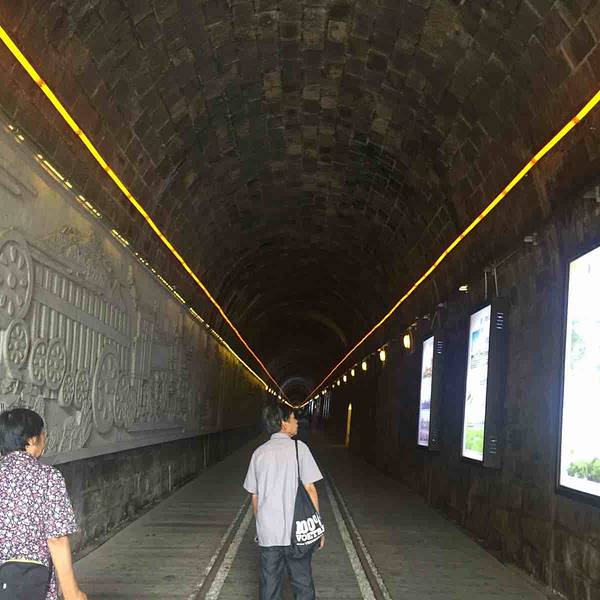 在铁路公园的一段之中 全长步行8-10分钟可以走完 隧道内的路面全部都是木栈道 是以前废弃的火车轨道改的 隧道两面墙有很多宣传厦门文化的宣传板 夏天走在隧道里非常阴凉 铁路公园也是一个散步的好地方 不过如果当...