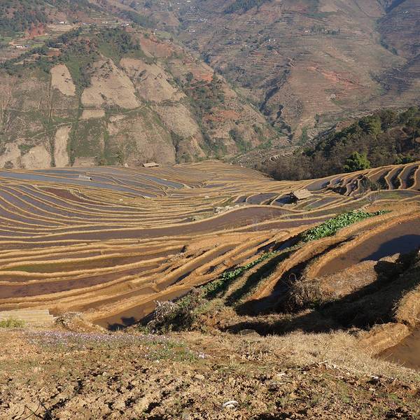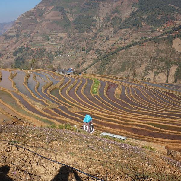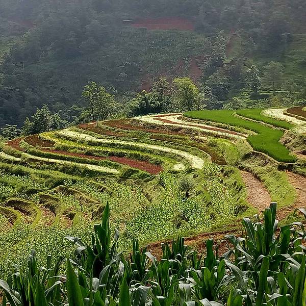 各种不同的颜色,梯田,就像在大地铺上一层五彩斑斓的傈僳族的织锦。