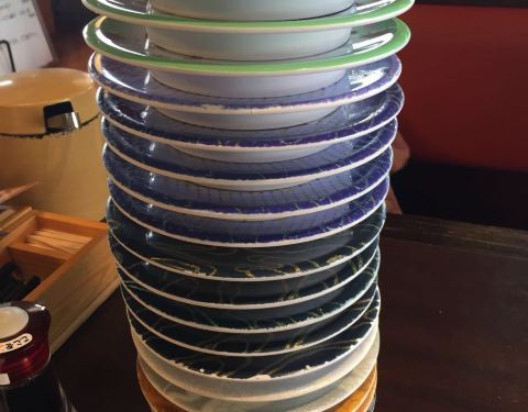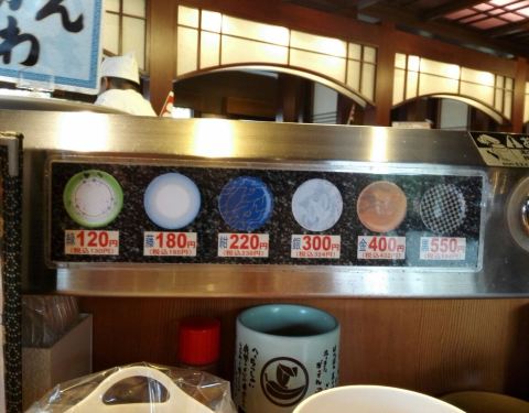 游完五棱郭公园是下午两点多,有些饿了就去找这家小有名气的餐馆,它就在公园旁边,挨着图书馆很好找。大摡是不在饭点上所以人不多。座位上有抹茶粉,杯子,还有热水龙头,喝茶自己中,旁边也有冷饮自已去取。供...游完五棱郭公园是下午两点多,有些饿了就去找这家小有名气的餐馆,它就在公园旁边,挨着图书馆很好找。大摡是不在饭点上所以人不多。座位上有抹茶粉,杯子,还有热水龙头,喝茶自己中,旁边也有冷饮自已去取。供应的菜品以寿司为主,每道菜上有编号,在点菜单上写上编号交给柜台内的厨师,厨师在台内现做然后端给你。每种颜色和花纹的盘子代表不同的价格,结账时数盘子计算价格。菜品中规中矩,没有很多特色,也没有太多值得称道的地方。