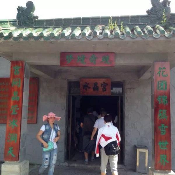 进入51.2万年前形成的水晶宫前,需要租用景区提供的棉衣,以抵御洞内的寒冷。不过,也有帅哥和美女穿着短衣、短裤进入冰洞,展示坚强的体魄。门票30元,老年票半折。 水晶宫(地下冰河)全长150多米,深23米,正...