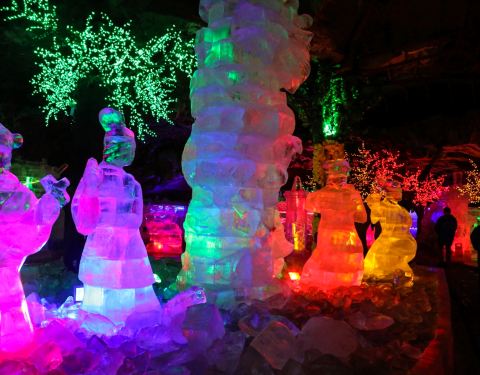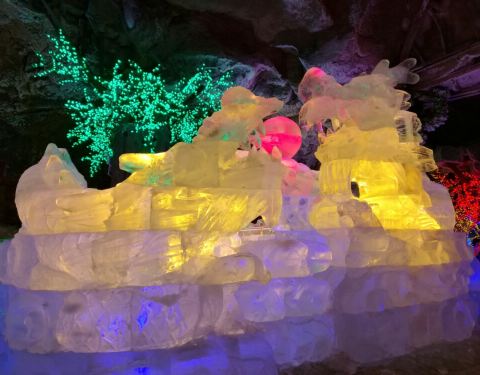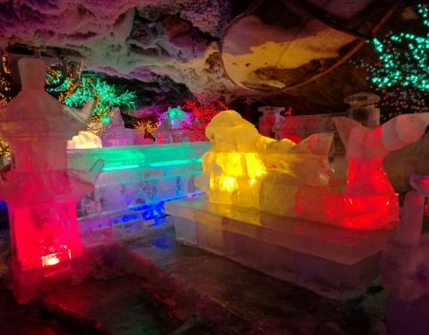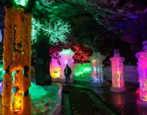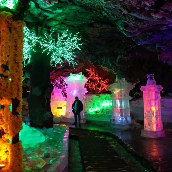 ...得租大衣,都是人工冰雕,缺少自然风光,不是很值,如果在其他地方看过地下溶洞,这个地方就不要去了景点很小,就是一个小山洞,深度也就几百米,里面很冷,得租大衣,都是人工冰雕,缺少自然风光,不是很值,如果在其他地方看过地下溶洞,这个地方就不要去了。