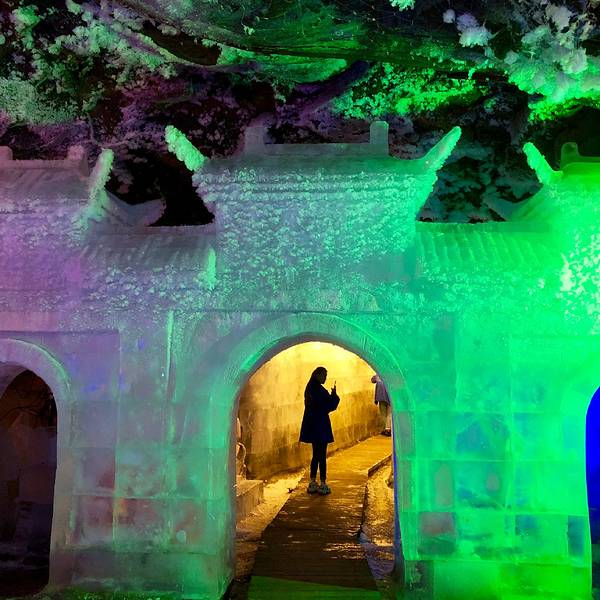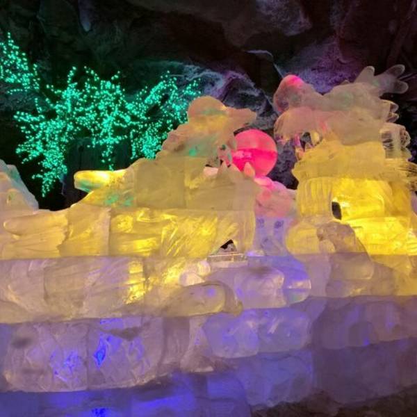 景点很小,就是一个小山洞,深度也就几百米,里面很冷,得租大衣,都是人工冰雕,缺少自然风光,不是很值,如果在其他地方看过地下溶洞,这个地方就不要去了。