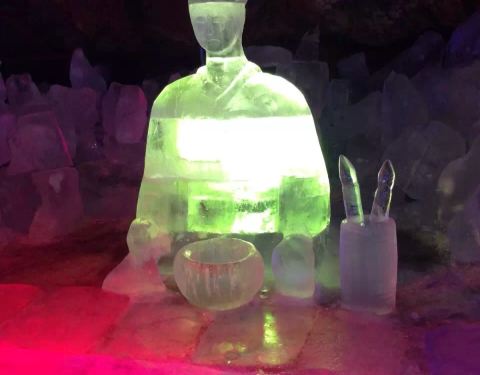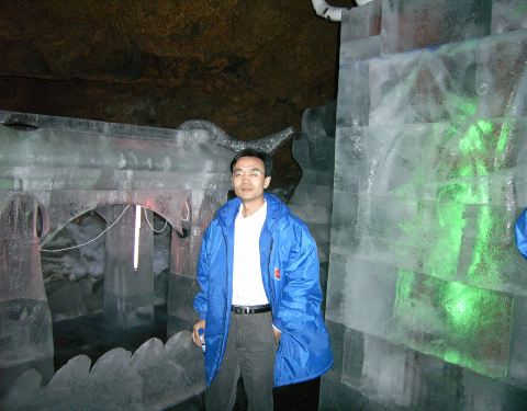洞不大,是一处地质景观,人工开发供游客观赏。其实内部分不清哪里是水晶那里是冰,反正我有种被忽悠的感觉。水晶宫为什么要租棉袄进入,那倒不是冰雕才需要低温保存。疑惑