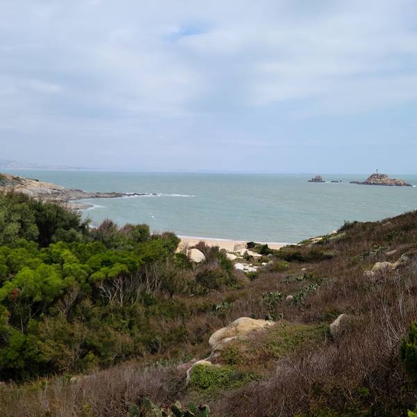 这边也靠近码头,穿过公交站那边的山路进村然后沿着大路走就到了,一公里多吧。免费的,海边的石头景观有点风景,可以看看。海滨栈道废了,走不了。