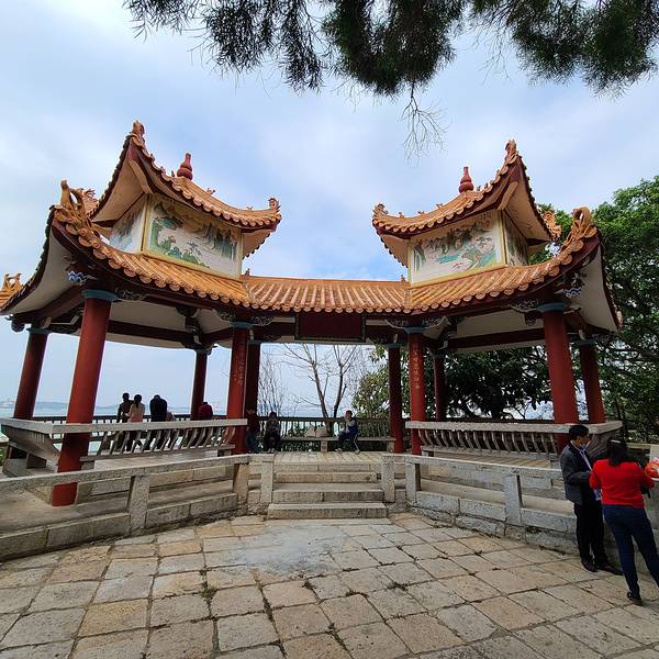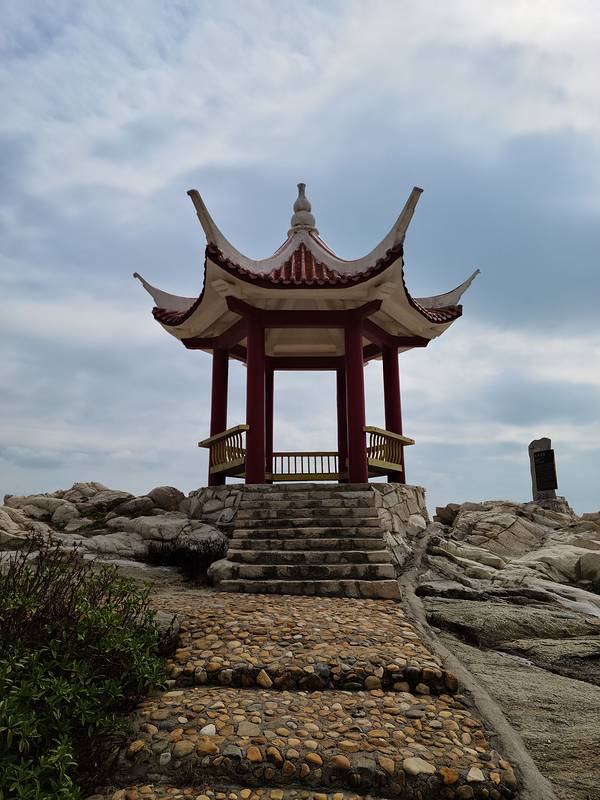 出碼頭後,跟著人群往右走,接主幹道湄洲大道繼續走150米,左方有個上坡步道,過了愛鄉亭後岔路往左後方走,接環島北路走到底可到湄嶼潮音。 靠近海邊後坐在潮音亭,欣賞海浪拍打岩石的潮音,附近沙灘享受日光浴。