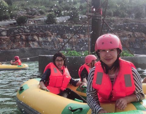 超级好玩的地方,团队过来的,整体漂流大概40分钟。切记要体型差不多的坐一起