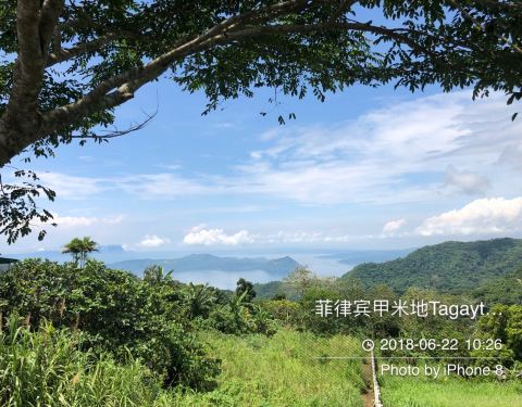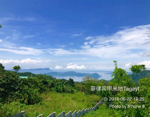 在塔尔酒店观景台可以看到远处的火山,去的时候,晴天,白云蓝天,感觉心情畅快。